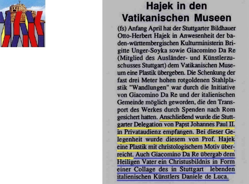 1995 /2 - rom - initiative : ein werk von O.H.Hajek in die "vatikanischen museen"