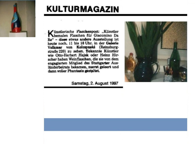 1997 /3 - stuttgart - galerie von kolczynski / künstler bemalen Flaschen für giacomino da re